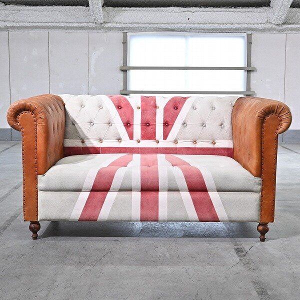 Casa Padrino 32万「Chesterfield Sofa Union Jack」ソファ 2人掛け チェスターフィールド 国旗 ヴィンテージ 本革 2P カーサ パドリーノ【 中古家具/中古インテリア/USED家具ユーズド家具/リサイクル】