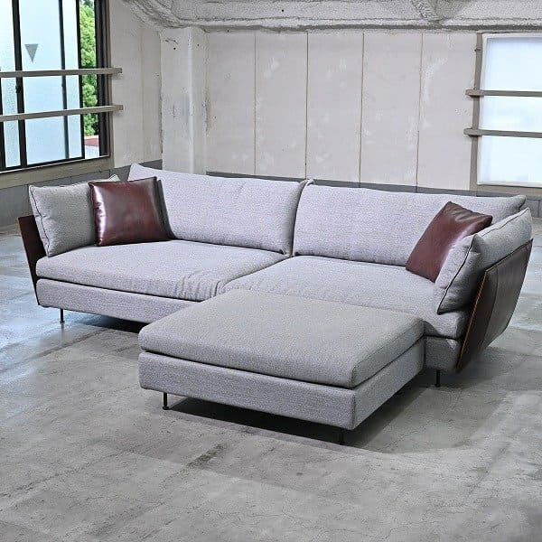 グレイッシュトーンのファブリックとブラウンレザーのコンビネーションが美しいモデル。