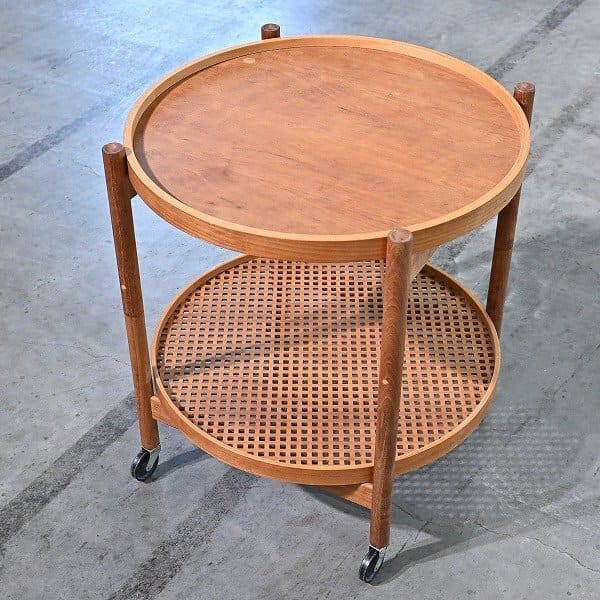 希少 ハンス・ブリングデザイン チークテーブル トロリー ワゴン サイド ラウンド 2段 北欧 デンマーク キッチン カフェ Hans Bolling【中古家具/中古インテリア/USED家具ユーズド家具/リサイクル】
