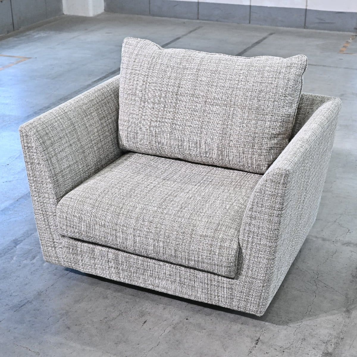 幅広でゆったりとした座面と厚みのあるクッションが特徴的。