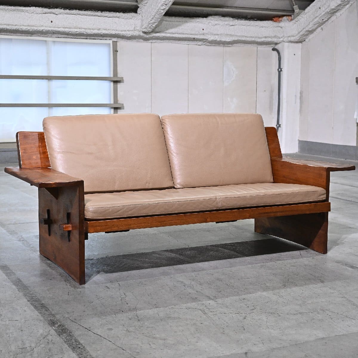 丸庄 40万「ONDA/オンダ」2人掛けソファ ラブ ウォールナット無垢材 本革 リビング ラウンジ 国産【中古家具/中古インテリア/USED家具ユーズド家具/リサイクル】