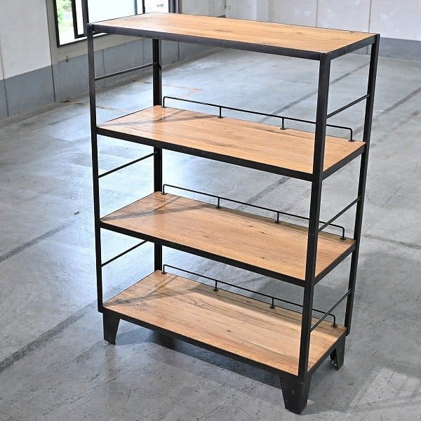 インダストリアル ディスプレイラック オーク無垢材 アイアンフレーム ブルックリン オープンシェルフ 飾り棚 キャビネット【中古家具/中古インテリア/USED家具ユーズド家具/リサイクル】