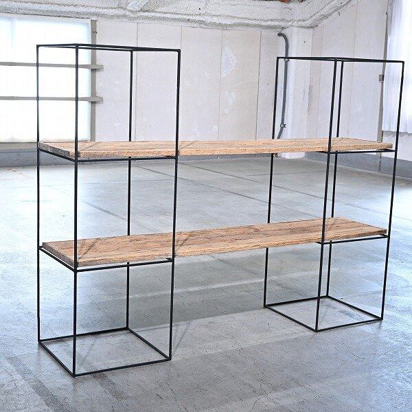インダストリアル オープンシェルフ 古材 アイアンフレーム 2列2段 飾り棚 ディスプレイ ラック ブルックリン リビング ダイニング 書斎【中古家具/中古インテリア/USED家具ユーズド家具/リサイクル】