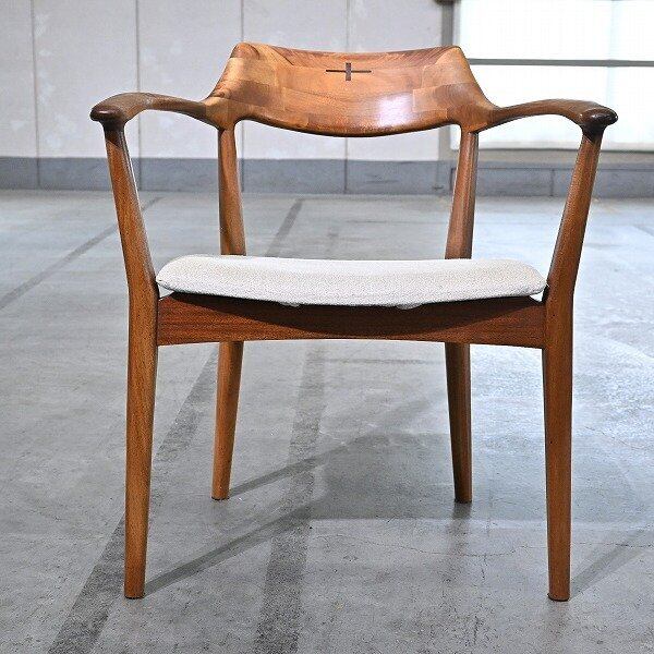 朝日木工 4万「EDDA/エッダ」アームチェア B アカシア 北欧スタイル ナチュラル 無垢 木製家具 椅子 リビング ダイニング【中古家具/中古インテリア/USED家具ユーズド家具/リサイクル】
