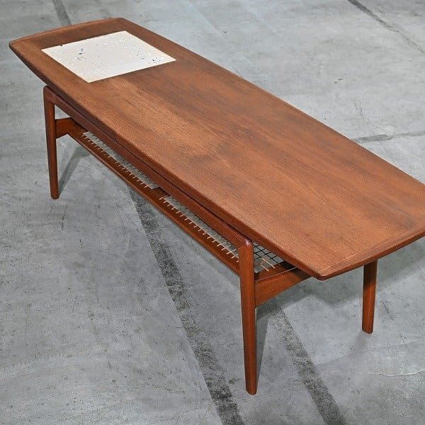 北欧デンマーク製 Mogens Kold社 センターテーブル チーク無垢材 ラタン タイル コーヒー ロー リビング ダイニング モーゲンス・コールド【中古家具/中古インテリア/USED家具ユーズド家具/リサイクル】