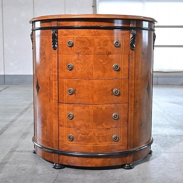 アールヌーボー様式 イタリアンテイスト 半円チェスト マホガニー材 ハーフムーン 引き出し 収納 リビング【中古家具/中古インテリア/USED家具ユーズド家具/リサイクル】