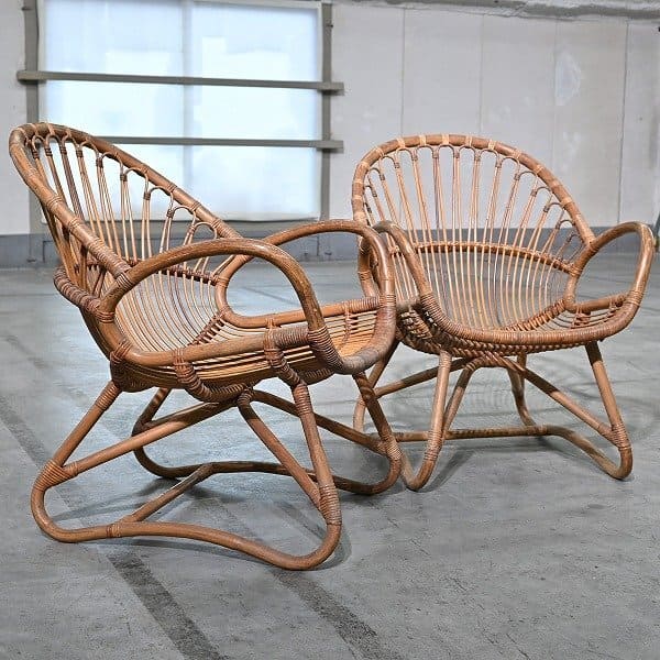 希少 山川ラタン 籐椅子 2脚セット 山川七郎 チェア スツール シングルソファ 一人掛け ビンテージ【中古家具/中古インテリア/USED家具ユーズド家具/リサイクル】
