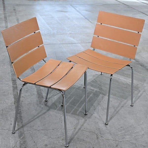 ACTUS取扱 イタリア製 fasem社 サイドチェア 2脚セット 本革 ジャンカルロ・ベグニ ダイニング リビング ラウンジ ファセム アクタス【中古家具/中古インテリア/USED家具ユーズド家具/リサイクル】