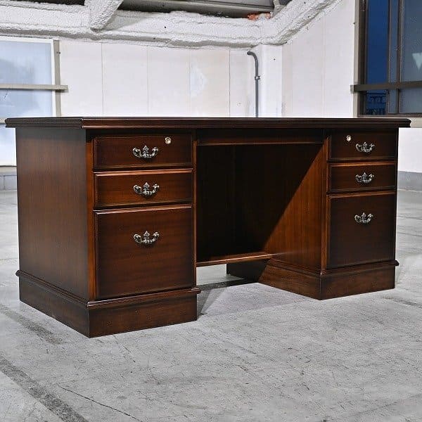 カリモク 27万「コロニアル/SC50」両袖デスク オバンコール×ブナ 作業机 引き出し 収納 勉強 クラシカル karimoku【中古家具/中古インテリア/USED家具ユーズド家具/リサイクル】