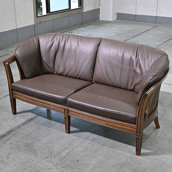 マルニ 地中海ロイヤル 65万「シャルル」2人掛けソファ 本革 ビーチ材 リビング ダイニング アーム 2P ラブ クラシカル maruni【中古家具/中古インテリア/USED家具ユーズド家具/リサイクル】