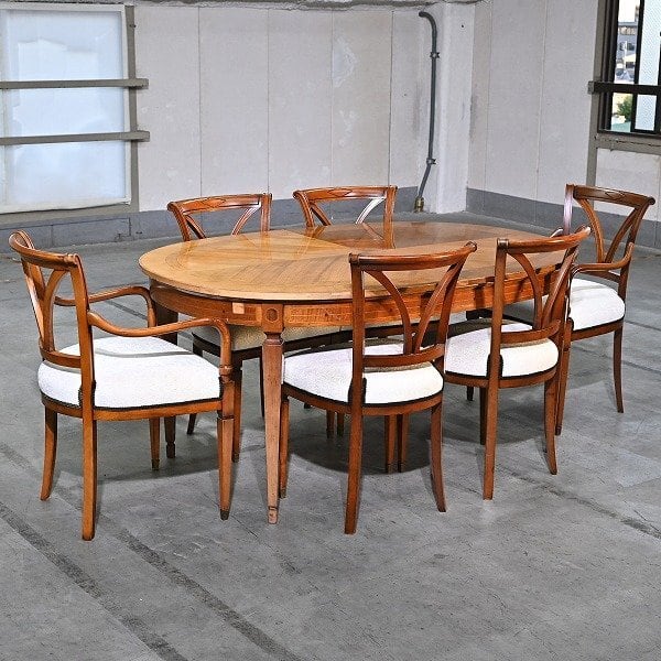 イタリア ANNIBALE COLOMBO「C1013 / B377」ダイニングセット チェリー材 テーブル 一人掛け チェア 象嵌 アンニバレ コロンボ【中古家具/中古インテリア/USED家具ユーズド家具/リサイクル】