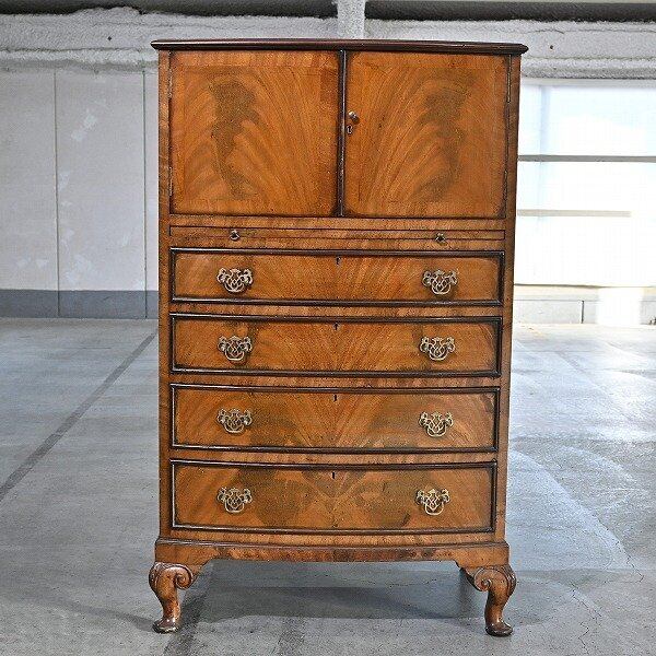 ロイズ・アンティークス 33万 トールボーイ バールウォールナット材 リビングチェスト 猫足 カブリオールレッグ 収納 Lloyd's Antiques
