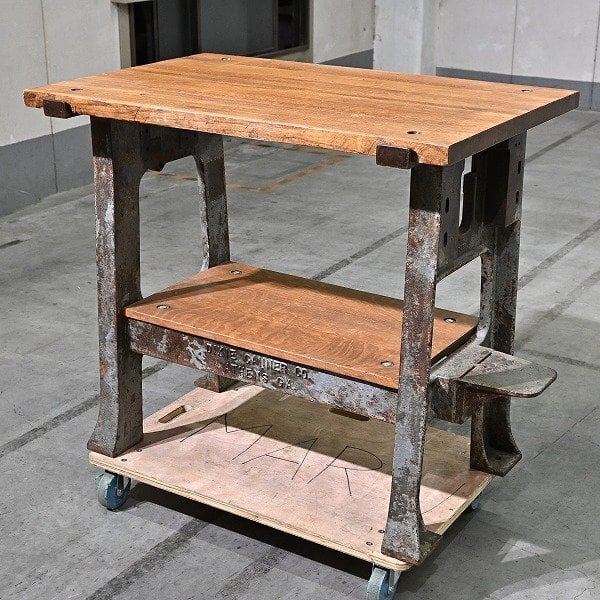 アメリカビンテージ DIXIE CANNER 作業机 オーク無垢材 インダストリアル ブルックリンスタイル 無骨 デスク 飾り台 ディスプレイ