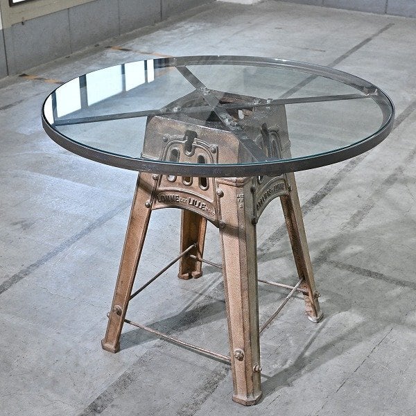 ★アメリカビンテージ モール・リチャードソン社 ラウンドテーブル ガラストップ インダストリアル ブルックリン 工業 倉庫 無骨