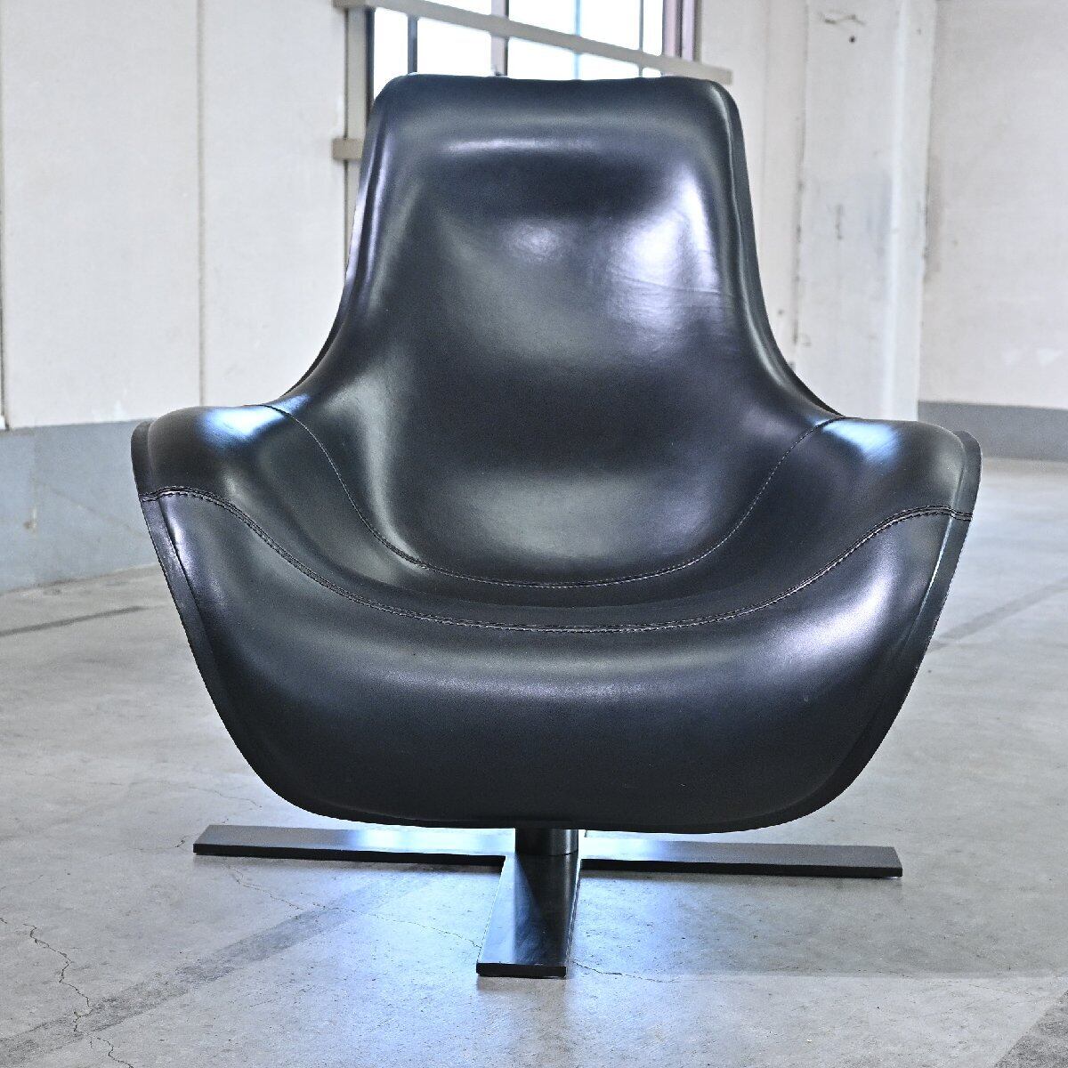 最高級 B&B ITALIA 265万「MART/マート」 スウィヴェルアームチェア 1人掛け 本革 回転 アントニオチッテリオ Antonio イタリア ラウンジ