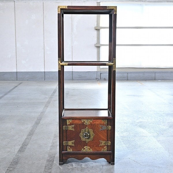 李朝家具 四方棚 ケヤキ材 欅 飾り 台 リビング 朝鮮 開き戸 キャビネット 電話 チェスト 本 ブックシェルフ 東洋