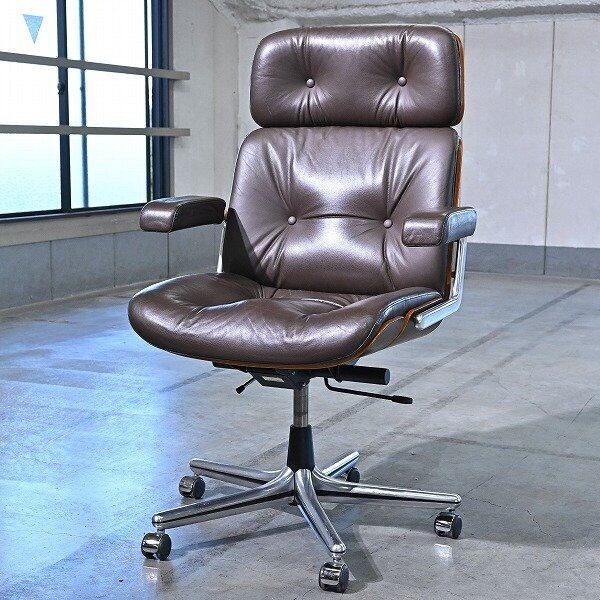 名作 スイス ジロフレックス 40万「82パサール」オフィスチェア E ローズウッド材 プライウッド 本革 ミッドセンチュリー 1人掛け giroflex