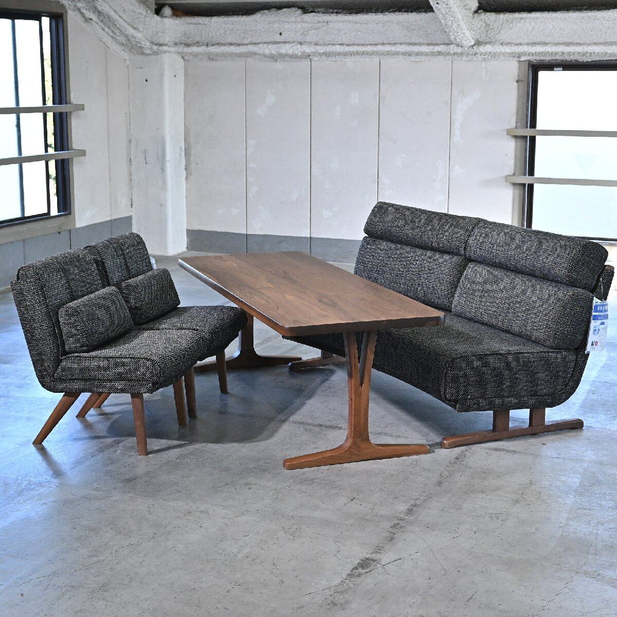 カリモク「チターノ/Chitano」リビングダイニング 4点セット ウォールナット材 2Pソファ 一人掛け 食卓 机 椅子 ベンチ テーブル KARIMOKU