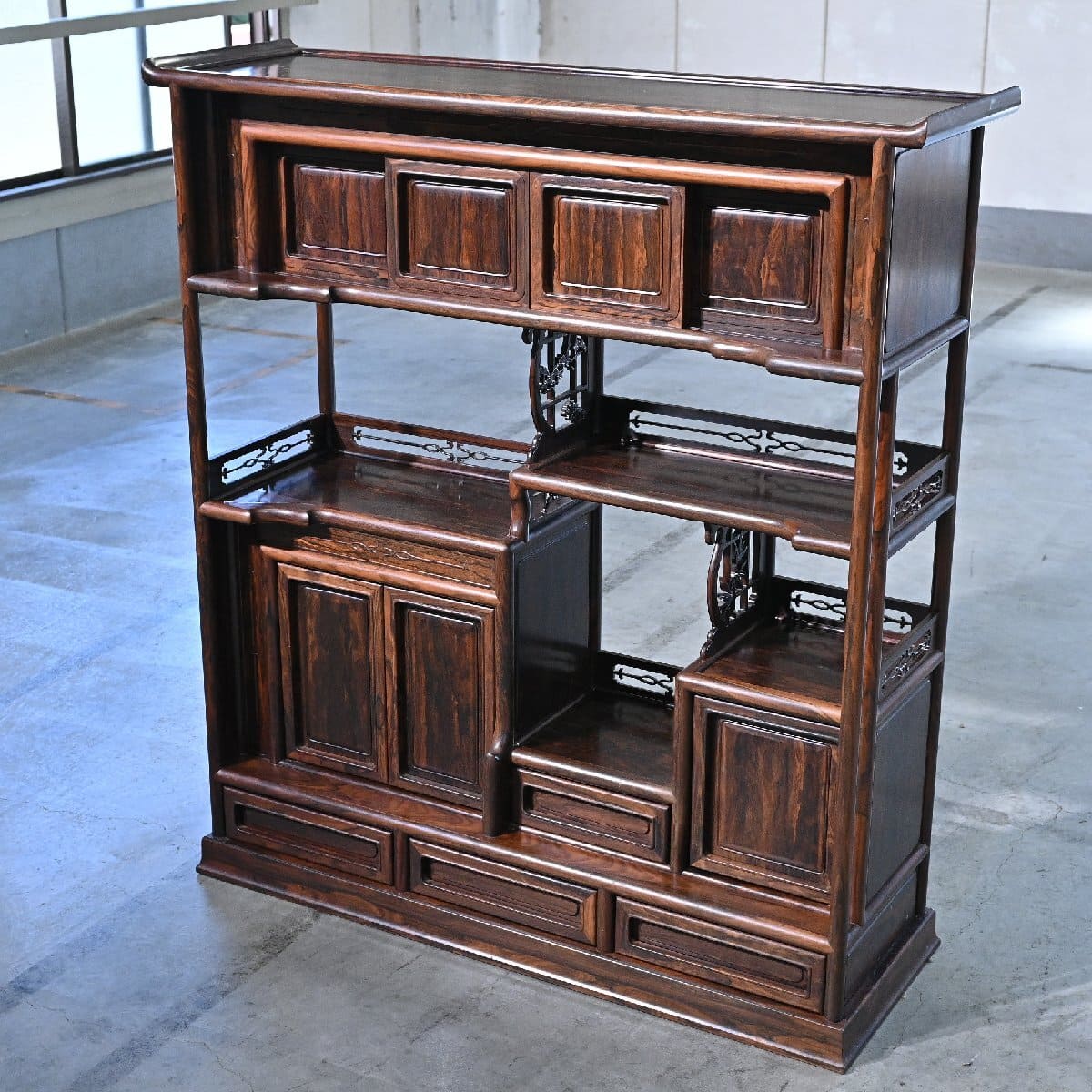 唐木家具 茶棚 柿材 無垢 収納 飾り アジアンビンテージ 引き出し リビング キッチン 和 食器棚