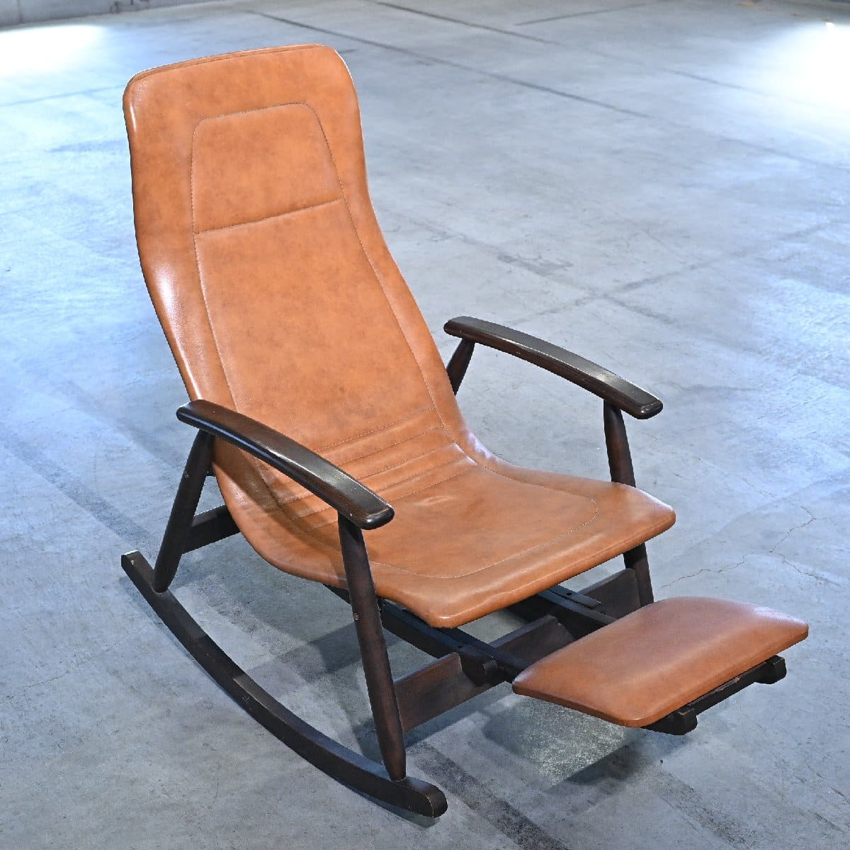 松田産業 ロッキングチェア フットレスト 無垢材 アーム 松田家具 安楽椅子 ビンテージ コニャック マツダ 書斎