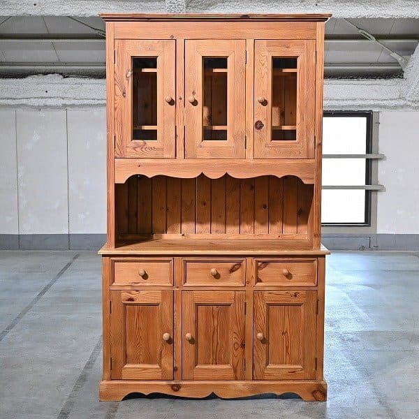 イギリス製 カップボード パイン無垢材 キャビネット 食器棚 収納 リビング 引き出し 英国 カントリー キッチン