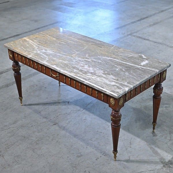 ★フランス製アンティーク 大理石トップ ローテーブル 無垢材 サイド センター 金具 装飾 クラシカル サロン ヨーロピアン ビンテージ