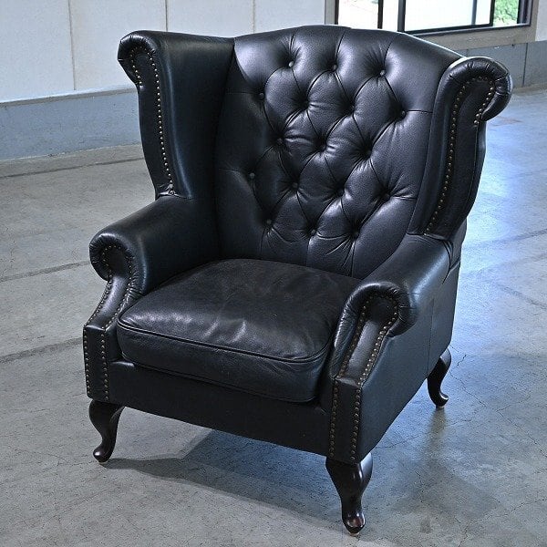 英国アンティーク チェスターフィールド アームチェア 一人掛けソファ リビング ダイニング 猫足 鋲 ボタン ホテル ロビー エントランス【中古家具/中古インテリア/USED家具ユーズド家具/リサイクル】