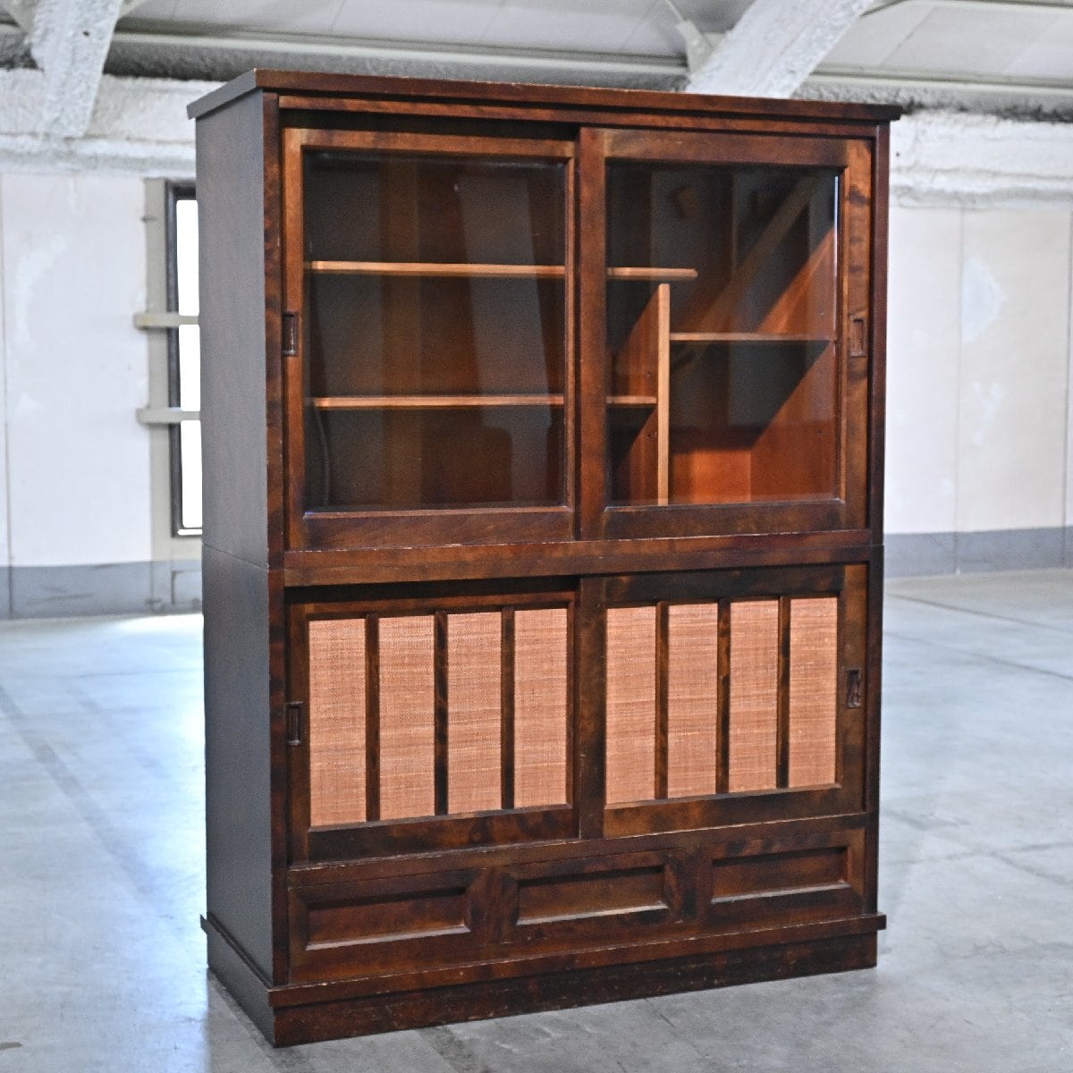 北海道民芸家具「#106」茶棚 樺無垢材 バーチ リビング ダイニング 和室 旅館 収納 ガラス戸 古民家 ジャパニーズモダン【中古家具/中古インテリア/USED家具ユーズド家具/リサイクル】