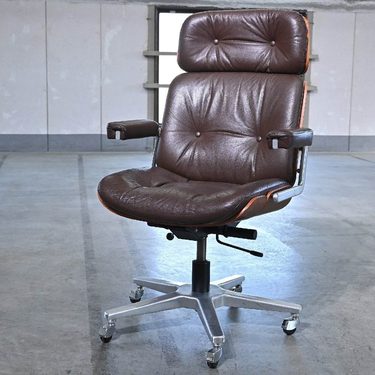 スイス ジロフレックス 40万「82パサール」オフィスチェア AQ ローズウッド材 プライウッド 本革 ミッドセンチュリー 1人掛け giroflex【中古家具/中古インテリア/USED家具ユーズド家具/リサイクル】