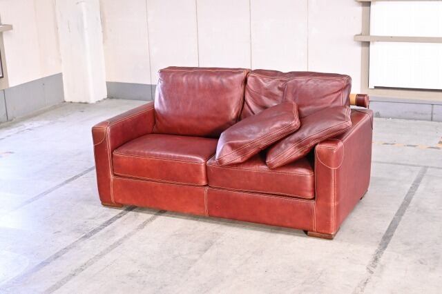 イタリア製 GAMMA ARREDAMENT/ガンマ・アレダメンティ 本革 2人掛けソファ 2P ラブソファ レザー モダン 高級 総革【中古家具/中古インテリア/USED家具ユーズド家具/リサイクル】