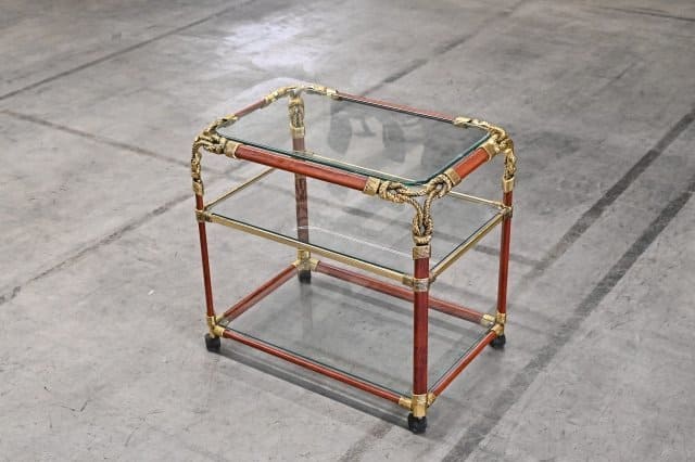 【引取限定】アンティーク調 サイドテーブル 三段 ディスプレイスタンド キッチンワゴン ゴールドトロリー キャスターワゴン ヒモ 花台【中古家具/中古インテリア/USED家具ユーズド家具/リサイクル】