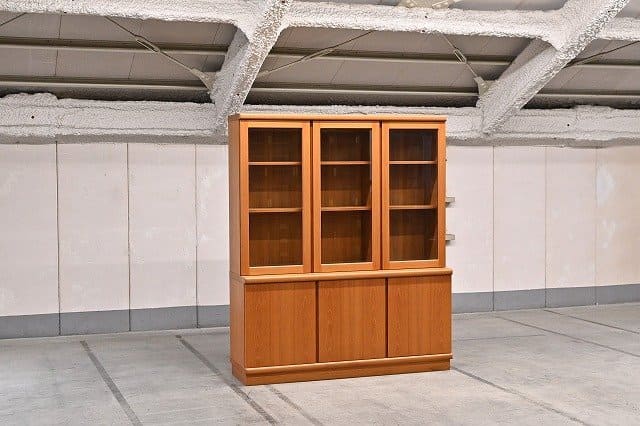 北欧ビンテージ チーク材 食器棚 カップボード キャビネット リビングボード 大型収納 ガラス扉【中古家具/中古インテリア/USED家具ユーズド家具/リサイクル】