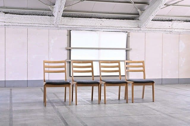 飛騨清見工房 ダイニングチェア 4脚セット オーク材 無垢 ファブリック 椅子 アームレス ナチュラル カントリー モダン 北欧スタイル【中古家具/中古インテリア/USED家具ユーズド家具/リサイクル】