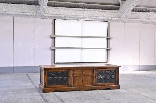 アンティーク調 オーク無垢材 テレビボード 13万 ローボード ステンドグラス 引き出し2杯 キャビネット 収納【中古家具/中古インテリア/USED家具ユーズド家具/リサイクル】