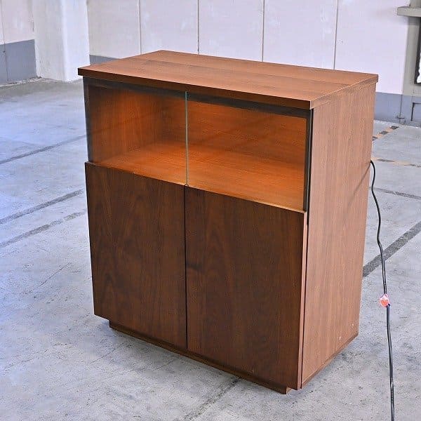 岡家具工業 12万「NEW ISORA/イソラ」80サイドボード ウォールナット材 キャビネット ライト 照明付き リビングボード 収納家具【中古家具/中古インテリア/USED家具ユーズド家具/リサイクル】