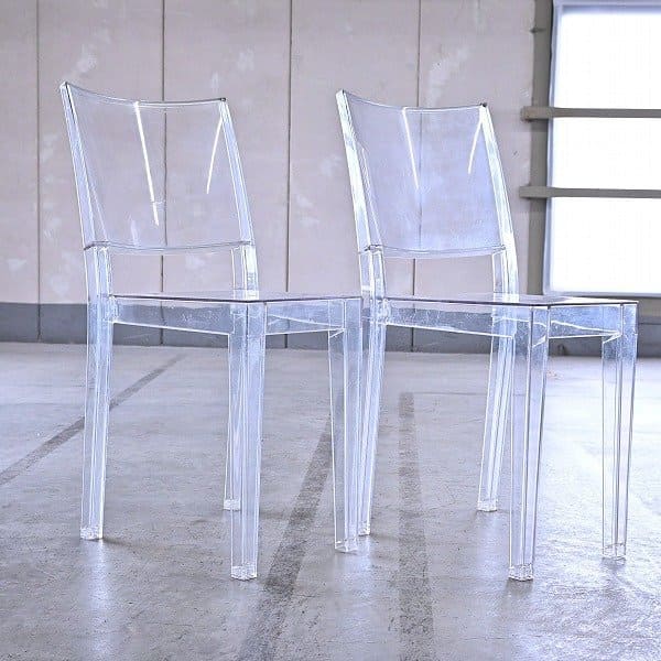 イタリア製 Kartell 10万「La Marie/ラ・マリー」ダイニングチェア2脚セットb ポリカーボネート クリスタル 椅子 透明 スリム カルテル【中古家具/中古インテリア/USED家具ユーズド家具/リサイクル】