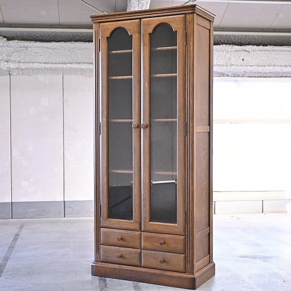 旭川家具 山室家具製作所 31万「ESPOIR/エスポアール」キャビネット オーク材 無垢 ブックシェルフ ガラス 書庫 リビング 収納 楢 【中古家具/中古インテリア/USED家具ユーズド家具/リサイクル】