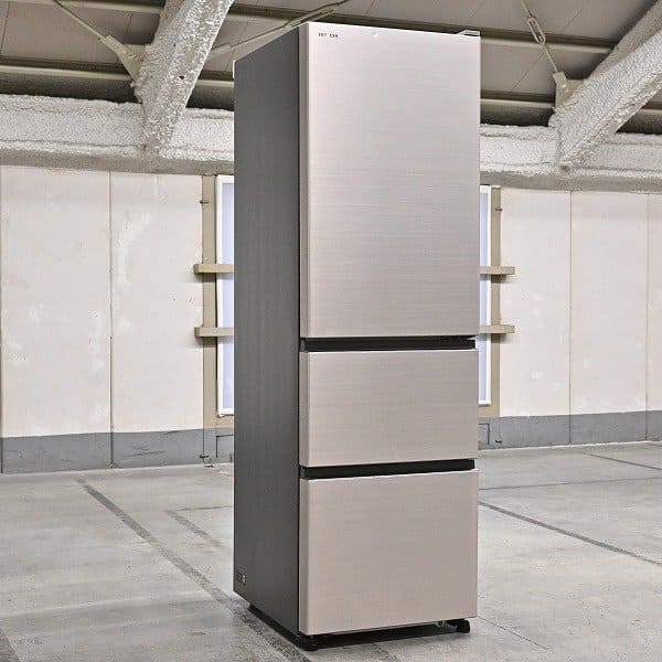 スリムな60cm幅の片開き3ドアタイプの冷蔵庫(315L)。