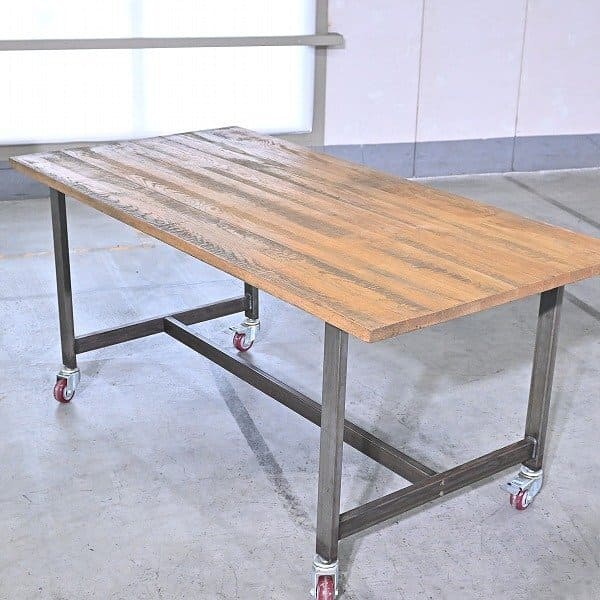 アイアンの脚に無垢材を使用した天板のため重量がありますが、