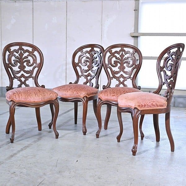 イギリスアンティーク ダイニングチェア 4脚セット 椅子 アームレス クラシック ロココ調 猫脚 店舗什器 ハイバック リビング【中古家具/中古インテリア/USED家具ユーズド家具/リサイクル】
