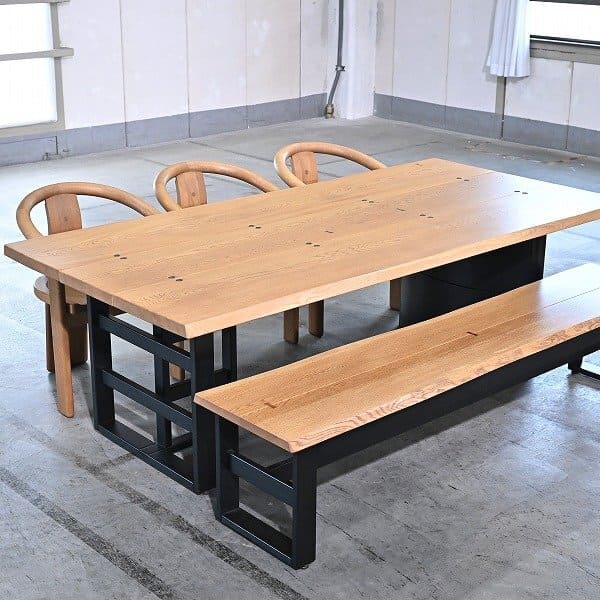匠工芸 「BAN」ダイニング5点セット オーク無垢材 ナラ テーブル ベンチ チェア 国産家具 旭川 TAKUMI _天童木工 秋田 飛騨【中古家具/中古インテリア/USED家具ユーズド家具/リサイクル】